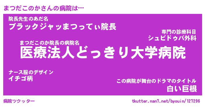 | 恥ずかしいあだ名 | 『プリティーまつだこのか』『まつっちょ』 |