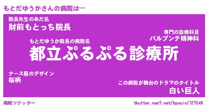 | 恥ずかしいあだ名 | 『プリティーもとだゆうか』『もとっちょ』 |