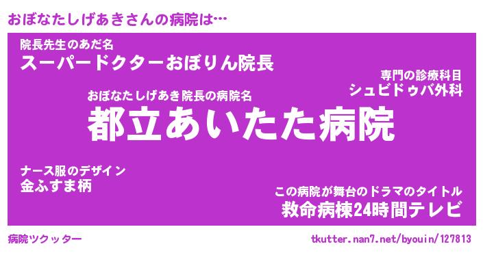 | 肩書あだ名 | 『おぼなたしげあき御曹司』 |