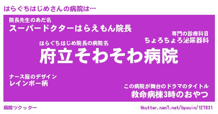 | 2回繰り返すあだ名 | 『はらはら』『ははらら』『ぶすぶす』 |