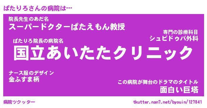 | 意味不明あだ名 | 『ペロリンぱたりろ』『永久保存ぱたりろ』 |