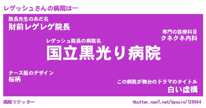 | 男性向けラノベタイトル風あだ名 | 『レゲッシュの憂鬱』 |