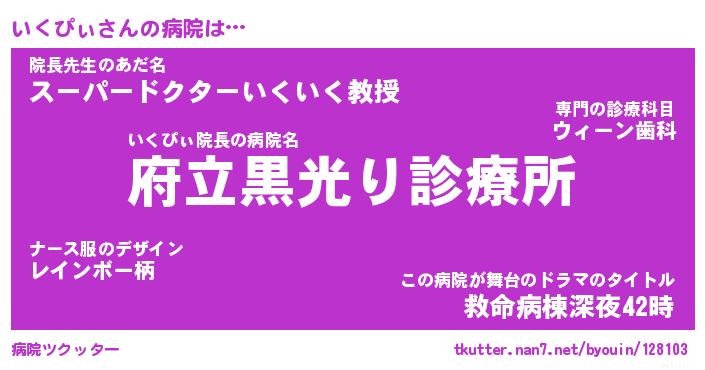 | 男性向けラノベタイトル風あだ名 | 『いくぴぃの憂鬱』 |