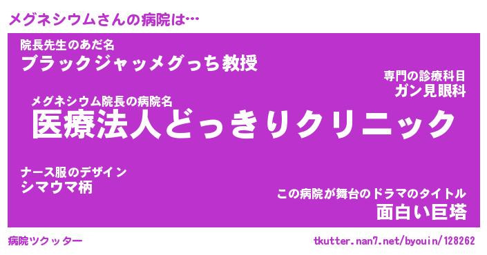 | 肩書あだ名 | 『メグネシウム御曹司』 |
