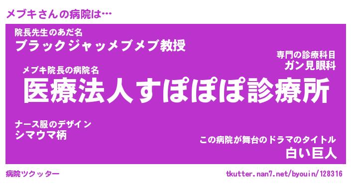 | ヒーロー風カッコイイあだ名 | 『スーパーメブキ』『ウルトラメブキマン』 |