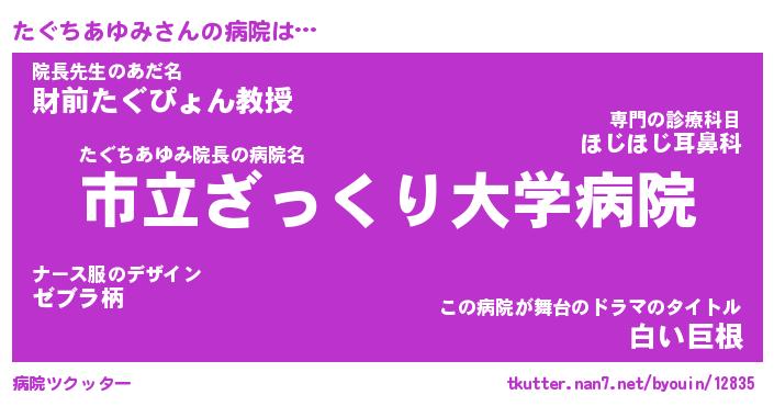 | 女子向けラノベタイトル風あだ名 | 『(仮)たぐちあゆみのやんごとなき事情』 |
