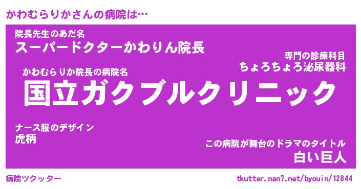 | 男性向けラノベタイトル風あだ名 | 『かわむらりかの憂鬱』 |