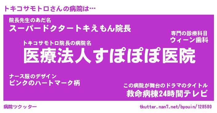 | ヒーロー風カッコイイあだ名 | 『スーパートキコサモトロ』 |