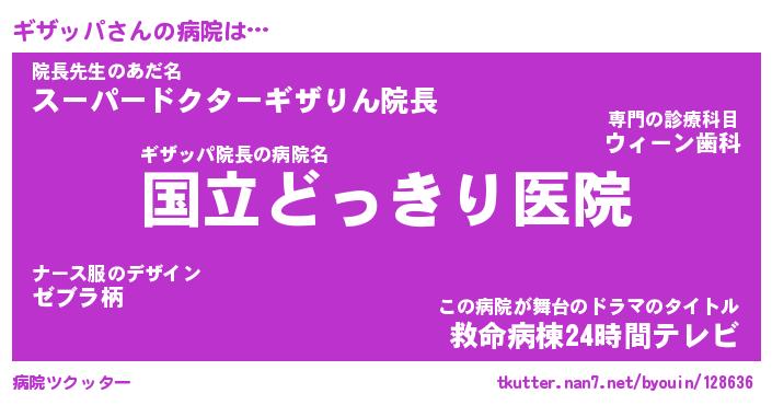 | ピコ太郎風あだ名 | 『ギコ八郎』『ピギ一郎』『ギザ一郎』 |