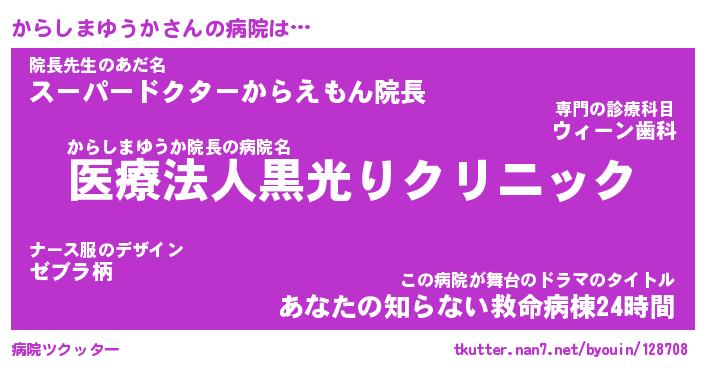 | 恥ずかしいあだ名 | 『プリティーからしまゆうか』『からちん』 |