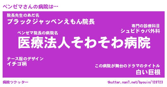 | 2回繰り返すあだ名 | 『ベンベン』『ベベンン』『ぼそぼそ』 |