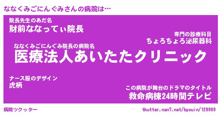 | 意味不明あだ名 | 『ペロリンななくみごにんぐみ』 |