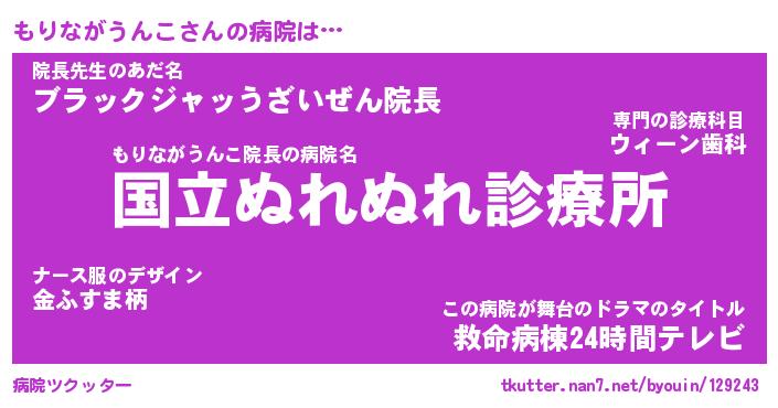 | 欧米人風あだ名 | 『マイケルもりながうんこ』 |