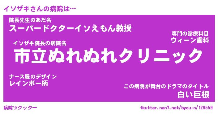| 意味不明あだ名 | 『ペロリンイソザキ』『永久保存イソザキ』 |