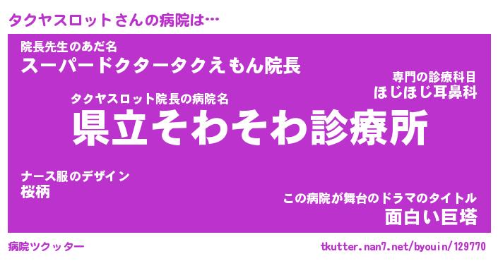 | 欧米人風あだ名 | 『マイケルタクヤスロット』 |