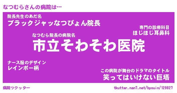 | 男性向けラノベタイトル風あだ名 | 『なつむらの憂鬱』 |