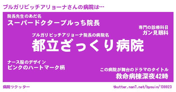 | 欧米人風あだ名 | 『マイケルブルガリビッチアリョーナ』 |