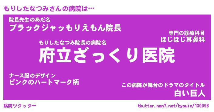 | 肩書あだ名 | 『もりしたなつみ御曹司』 |