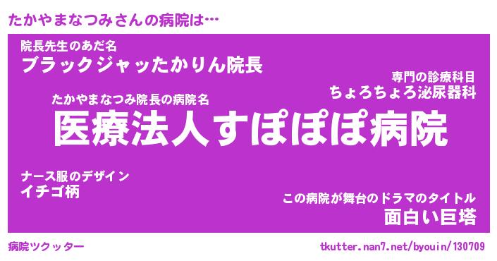 | 恥ずかしいあだ名 | 『プリティーたかやまなつみ』『たかちん』 |