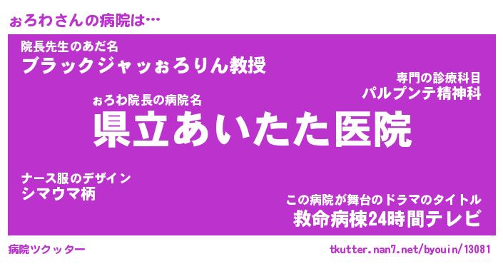 | 呪いの病院の様だw …「あさぎ」 | 3月30日 10:32 |