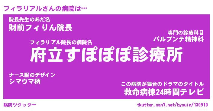 | ヒーロー風カッコイイあだ名 | 『スーパーフィラリアル』『幻影騎士フィ』 |