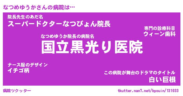 | 恥ずかしいあだ名 | 『プリティーなつめゆうか』『なつっちょ』 |