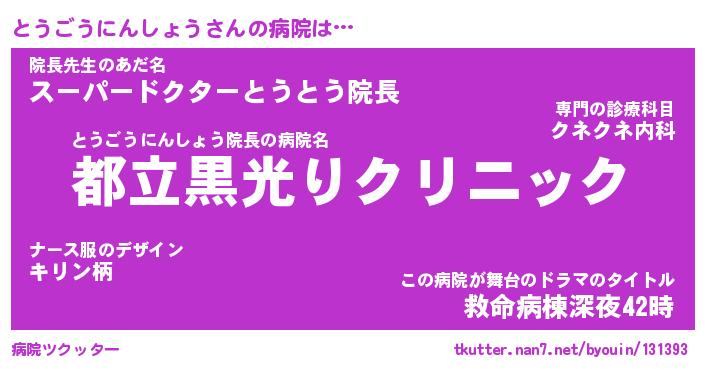 | 2回繰り返すあだ名 | 『とうとう』『ととうう』『けほけほ』 |