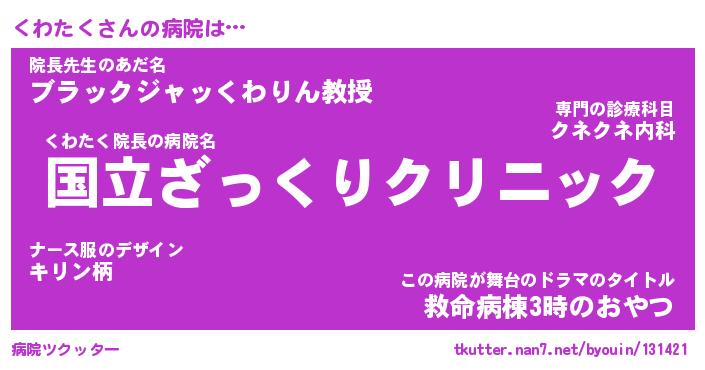 | 男性向けラノベタイトル風あだ名 | 『くわたくの憂鬱』 |