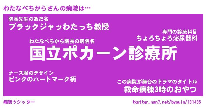 | 2回繰り返すあだ名 | 『わたわた』『わわたた』『ぎらぎら』 |