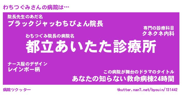 | ヒーロー風カッコイイあだ名 | 『スーパーワチツグミ』『幻影騎士ワチ』 |