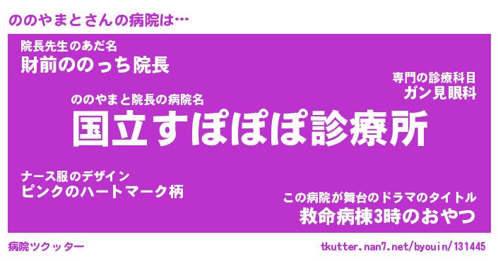 | 2回繰り返すあだ名 | 『のののの』『のののの』『ぽつぽつ』 |