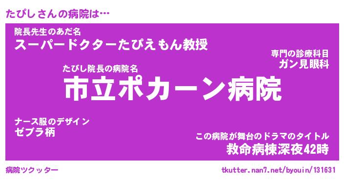 | ヒーロー風カッコイイあだ名 | 『スーパータピシ』『ウルトラたぴしマン』 |
