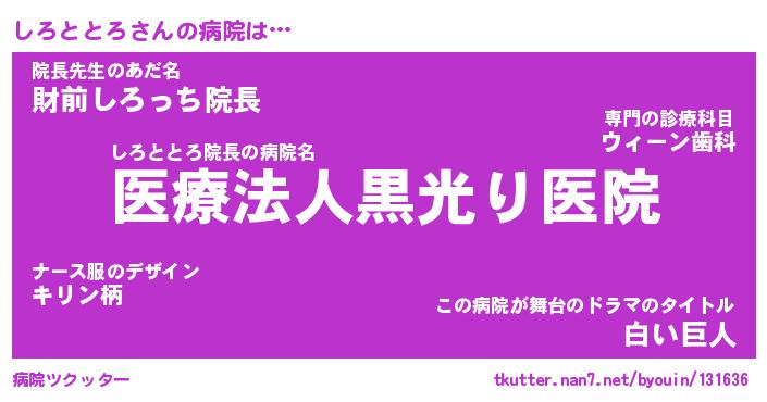 | 2回繰り返すあだ名 | 『しろしろ』『ししろろ』『ぬるぬる』 |