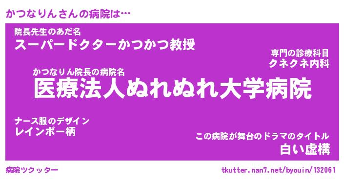 | ヒーロー風カッコイイあだ名 | 『スーパーカツナリン』『暗黒騎士カツ』 |