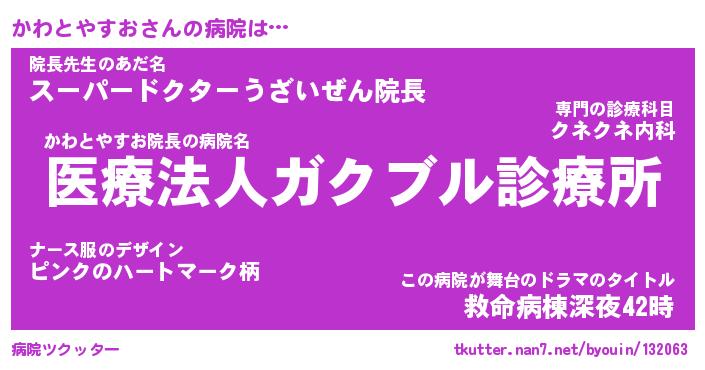 | ヘコむあだ名 | 『かわにゅー』『牛乳』『かわっぺ』 |