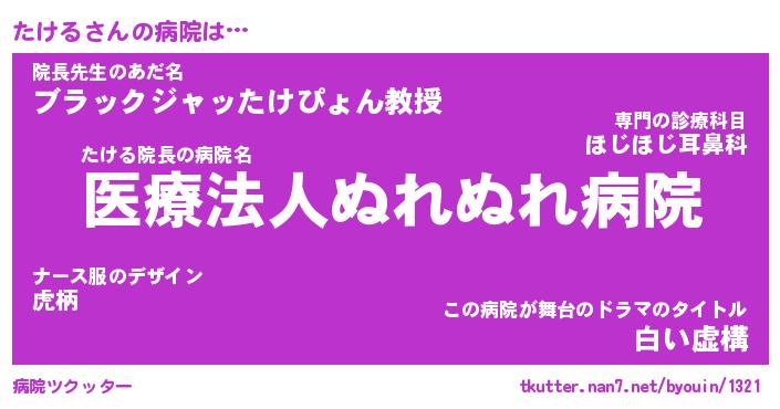| ヘコむあだ名 | 『たけもー』『牛乳』『たけ太郎』 |