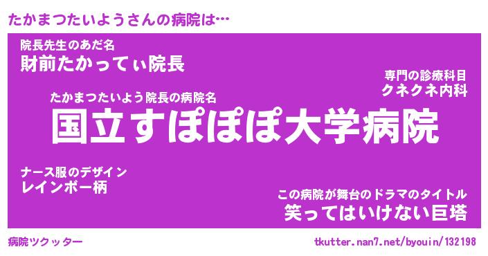 | 男性向けラノベタイトル風あだ名 | 『たかまつたいようの憂鬱』 |