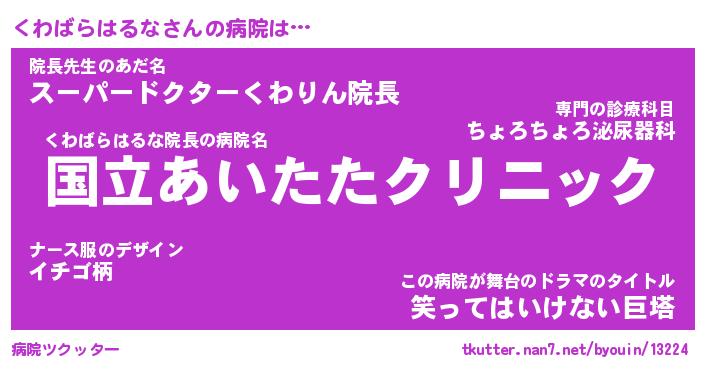 | 伝説のあだ名 | 『伝説のスナイパーくわばらはるな』 |