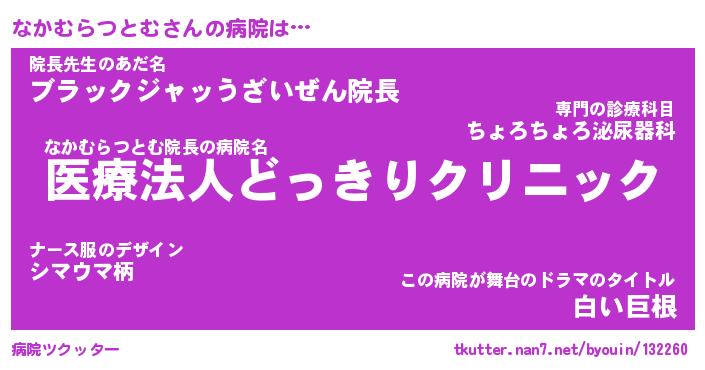 | 肩書あだ名 | 『なかむらつとむ御曹司』 |