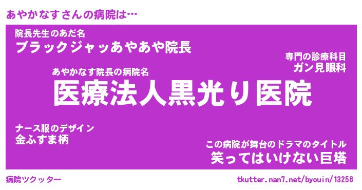 | 胡散臭い通販商品みたいなあだ名 | 『億万長者になれるブレスレット…その名も「あやかなす」』 |