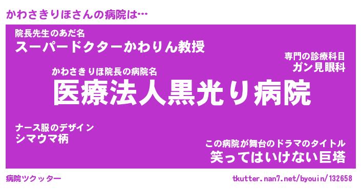 | ヒーロー風カッコイイあだ名 | 『スーパーカワサキリホ』『幻影騎士カワ』 |