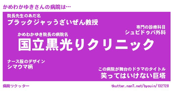| 2回繰り返すあだ名 | 『かめかめ』『かかめめ』『ぬれぬれ』 |