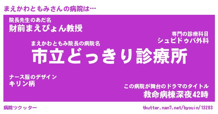 | 肩書あだ名 | 『まえかわともみ御曹司』 |