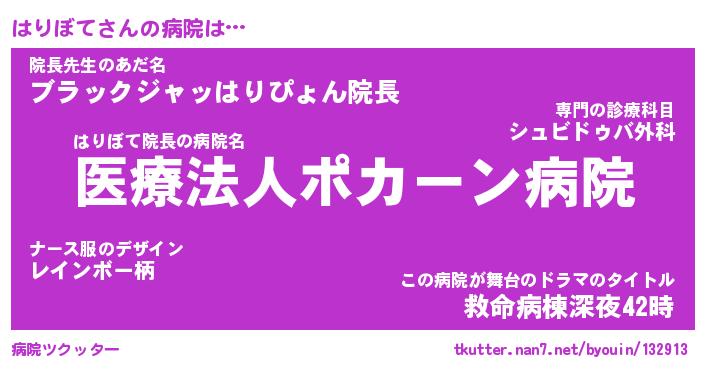 | ピコ太郎風あだ名 | 『ハコ四郎』『ピハ八郎』『ハリ三郎』 |