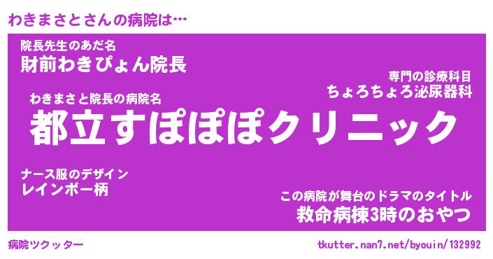 | ファンタジー風あだ名 | 『ワキフェル』『エターナルワキマサトー』 |