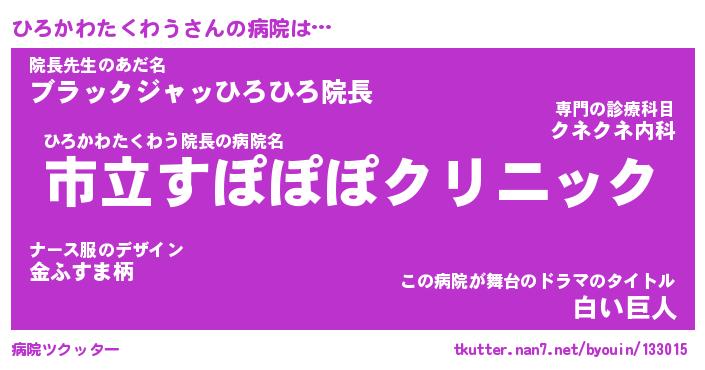 | 男性向けラノベタイトル風あだ名 | 『ひろかわたくわうの憂鬱』 |