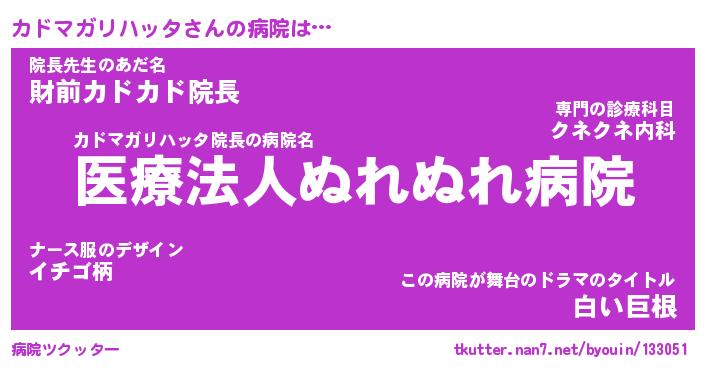 | 胡散臭い通販商品みたいなあだ名 | 『億万長者になれる水晶球…その名も「カドマガリハッタ」』 |
