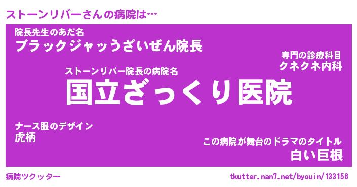 | 男性向けラノベタイトル風あだ名 | 『ストーンリバーの憂鬱』 |