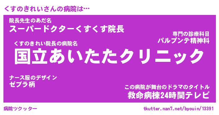 | 伝説のあだ名 | 『伝説のスナイパーくすのきれい』 |