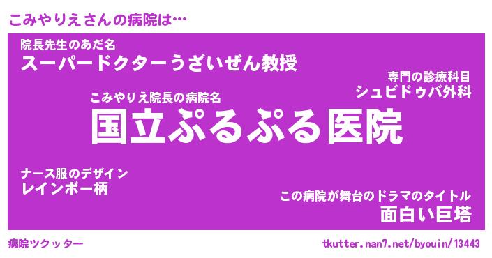 | ヒーロー風カッコイイあだ名 | 『スーパーコミヤリエ』『暗黒騎士コミ』 |